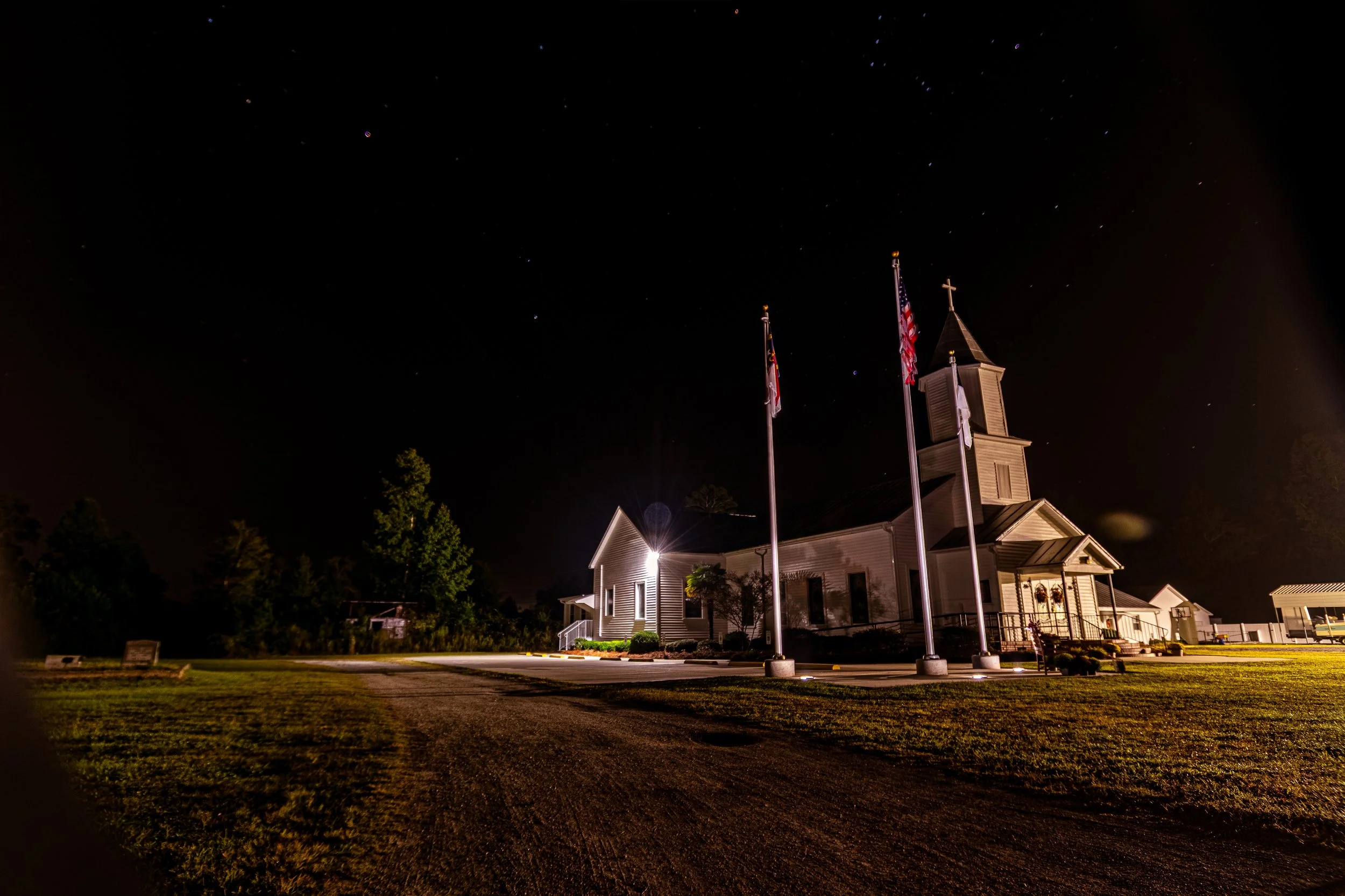 There is a church down the road from my house, I drive by this church several times a day, but at night or early morning is when it catches my eye. I always think, “I need to take a picture of that, look how beautiful it is.” Finally this morning I stopped, looked at it for a moment, checked my settings so that everything would be just right. For landscape pictures I like to take a bracket shot. What is a bracket shot, you ask? A bracket shot is a series of photos taken consecutively, usually 3,5,7, and even up to 9 photos taken. What this does is help the photographer get the lighting and exposure of all areas of the photo just right.