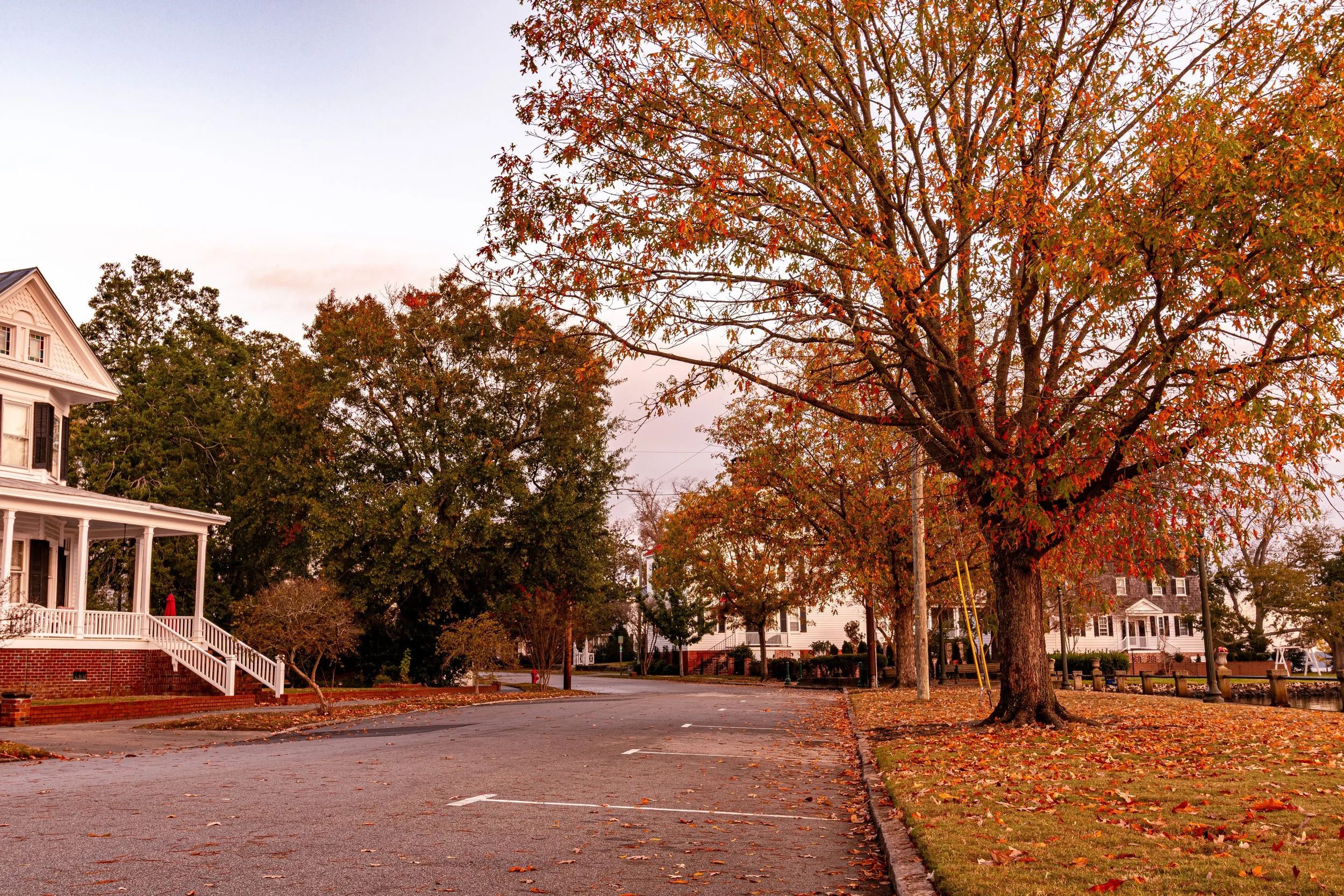 “When autumn settles over Eastern North Carolina, the mornings turn to gold. Streets fall quiet, trees burn with color, and the first light of day brushes against old porches, church columns, and winding roads. These images capture the peace and beauty of those moments — where history, nature, and the season meet.”